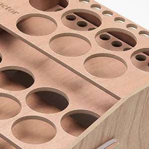 - 【Natural Wood Veneered】Paint brush rack is made of strong MDF panels with natural wood veneered surface which is environmental and stable. The brushes stand has an attractive wood finish with a bit of shine and you’ll definitely love how it looks and holds your premium brushes.