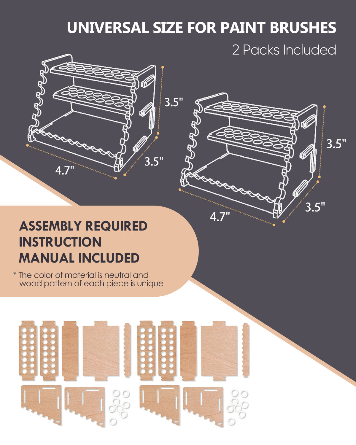 - 【Easy to Assemble】Paint brush rest holder will be shipped in flat and in pieces. Illustrated instructions in the package for assembly are easy to follow. There are rubber bands that hold pieces in place and allow you to install it without tools or to disassemble if needed. Paint brush holder for artist will be fun to make and putting them together only requires a few steps. Art brush storage rack is lightweight and will stay together well for you to pick up for moving.